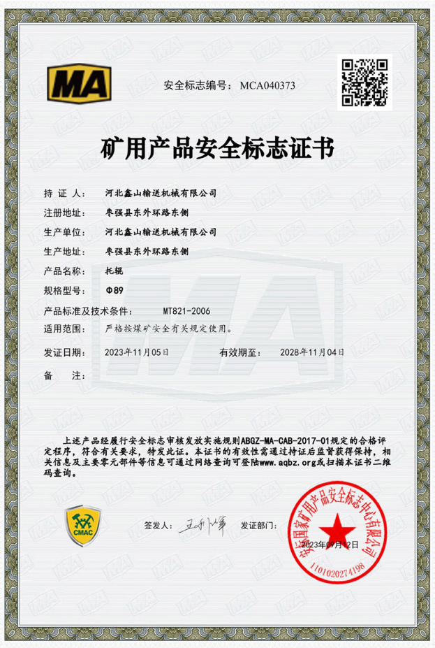 礦(kuàng)用產品(pǐn)安全標誌證書